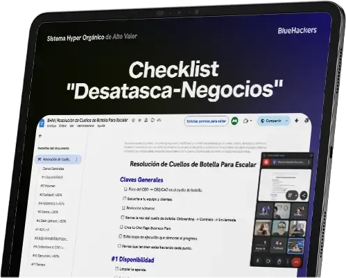 La Checklist "Desatasca-Negocios". Una checklist de resolución de cuellos de botella explicada en vídeo, para que sepas cómo resolver y optimizar cada parte del sistema. Esto le ayudó a mi cliente Samael a aumentar 30.000 USD al mes su facturación. Valorado en: $200 USD.