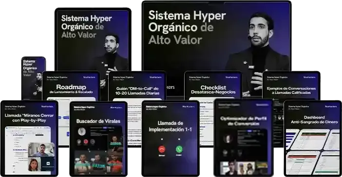 Instalas el Sistema Hyper Orgánico de Alto Valor con plantillas, guiones y sistemas probados en más de 280 negocios, y empiezas a añadir hasta $5.000–$20.000 USD extras al mes a tu facturación con un solo pago de $27 USD.